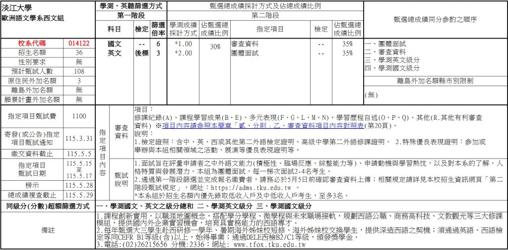 詳細時程可參考本校教務處招生策略中心 重要時程