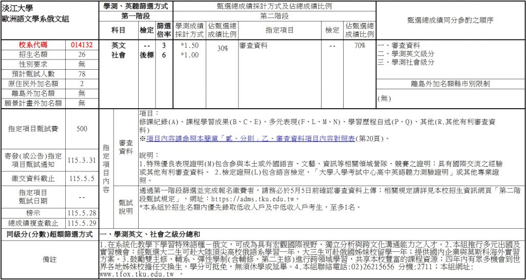 詳細時程可參考本校教務處招生策略中心 重要時程