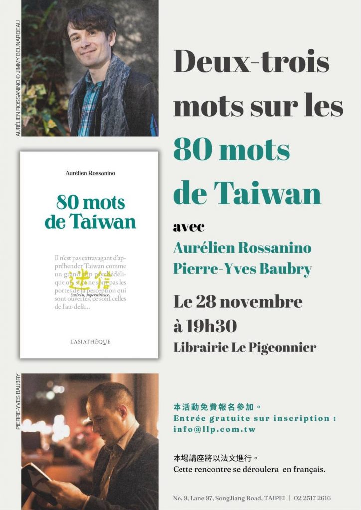 奧雷利安老師將在信鴿書店舉辦新書發表會,歡迎各位同學、老師共襄盛舉。